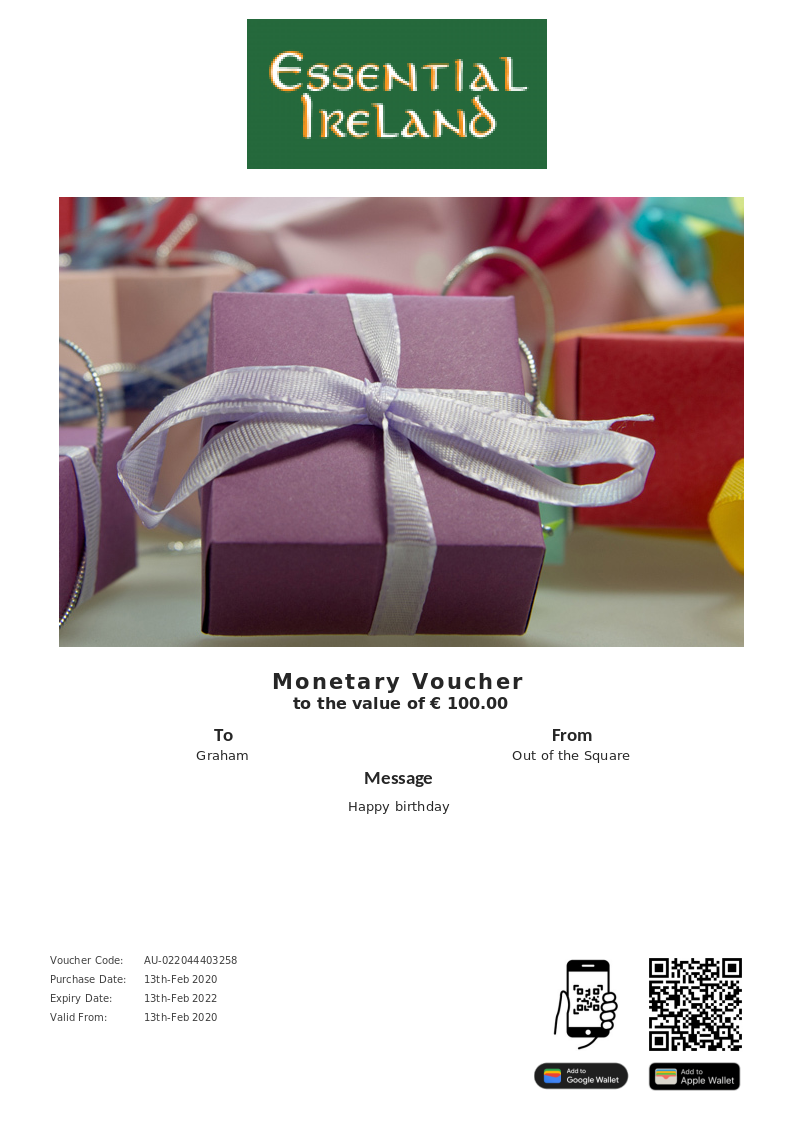 Essential Ireland allows you to purchase instantly printable gift vouchers, special offers and tickets using the Voucher Connect platform.